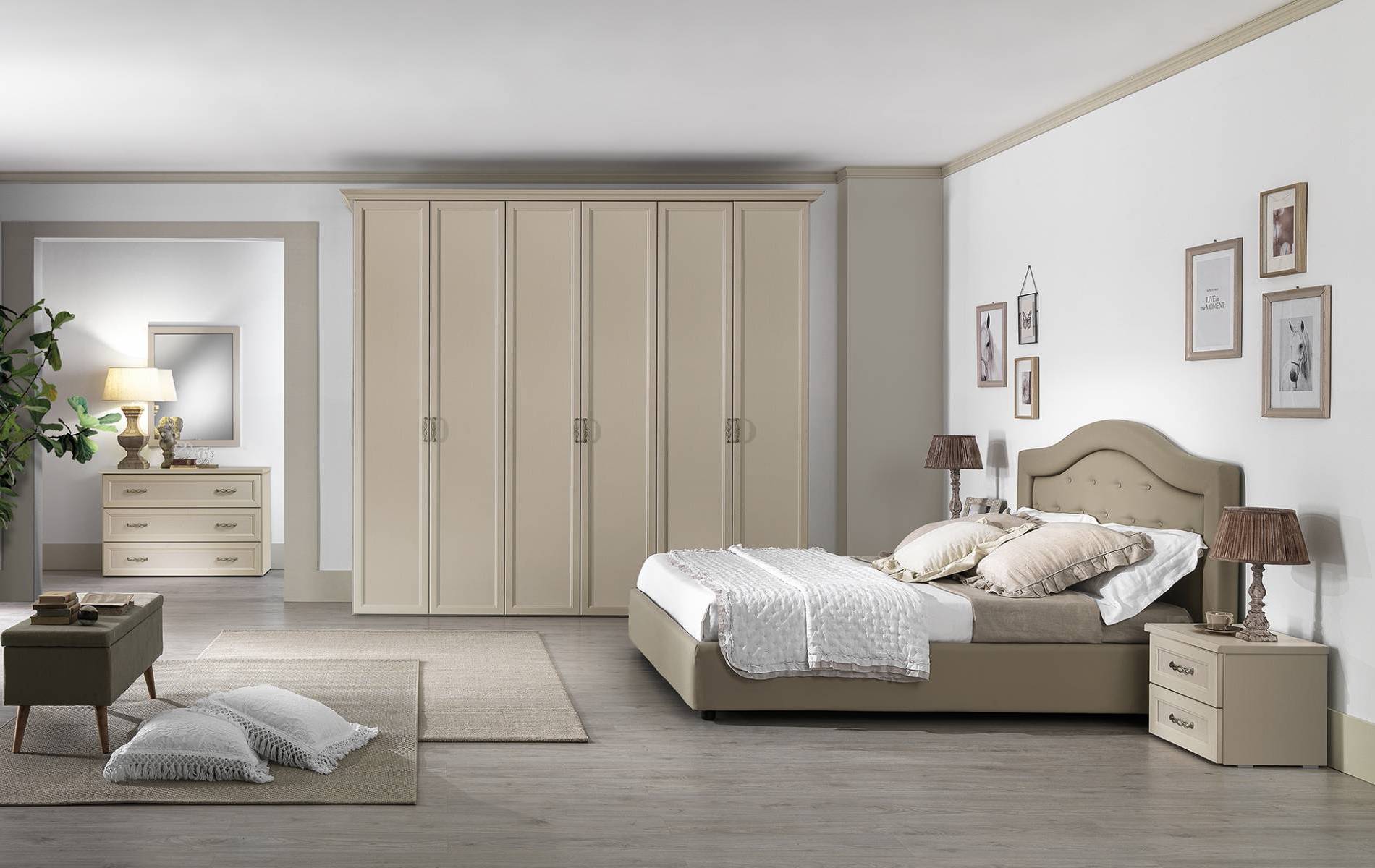 Camera classica, disponibile in varie finiture, capace di creare un’atmosfera calda e avvolgente.