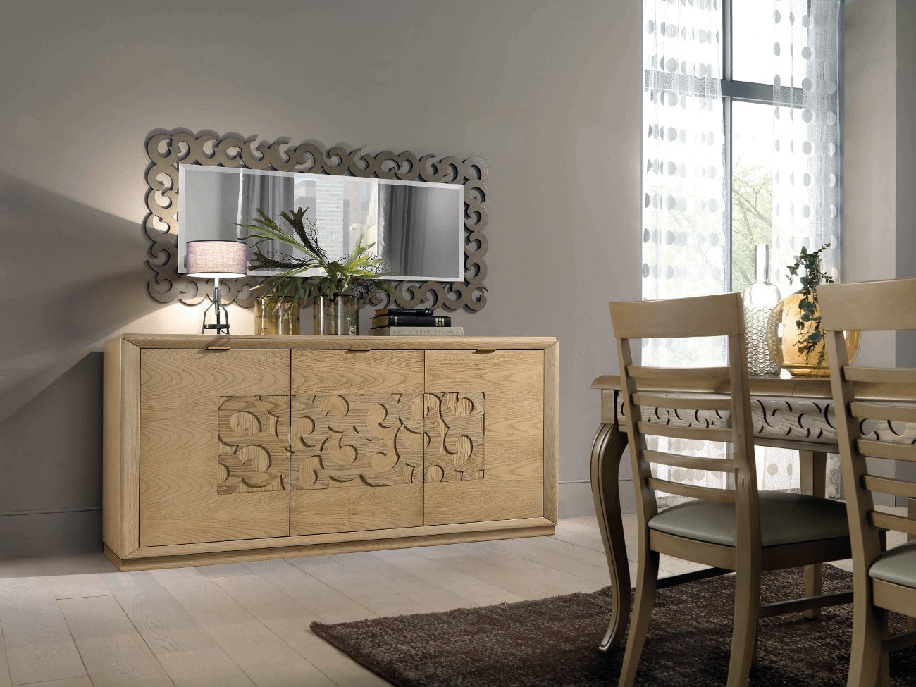 Le marcate venature del legno, esaltate da una raffinata decorazione, la rendono l’alleata perfetta per un living esclusivo