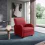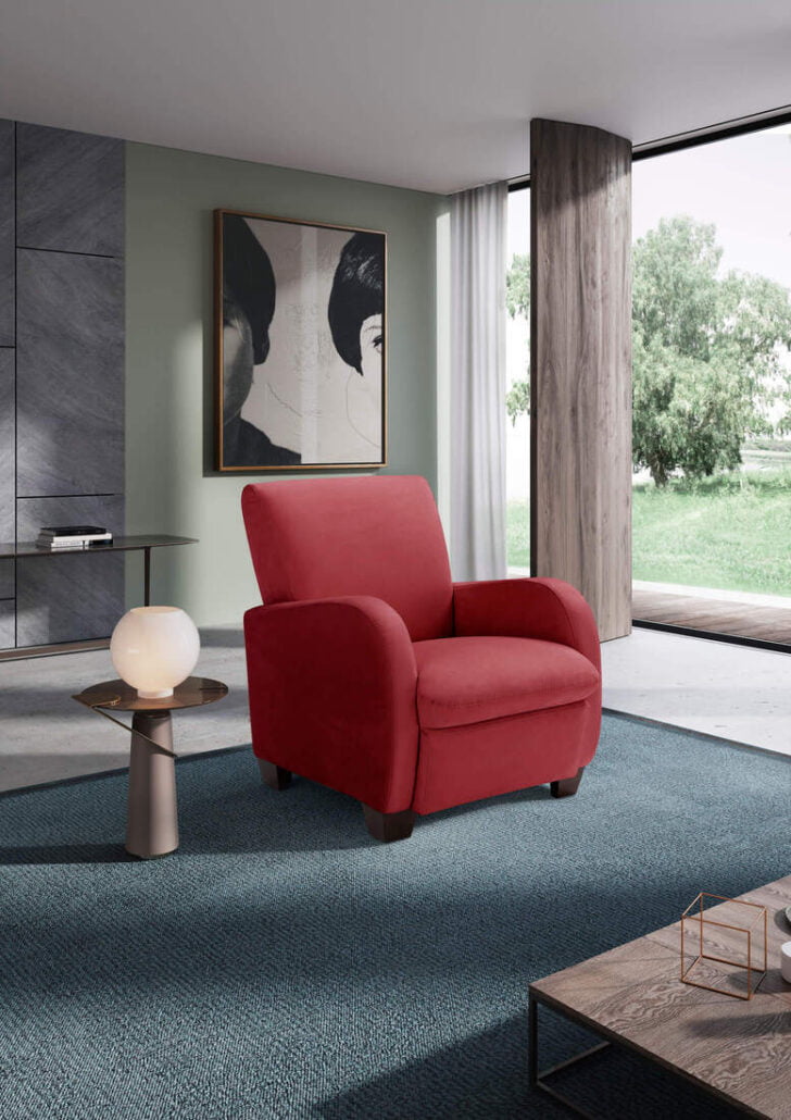 Poltrona dal design contemporaneo. L’ampio schienale avvolgente e la seduta imbottita garantiscono il massimo comfort e morbidezza.